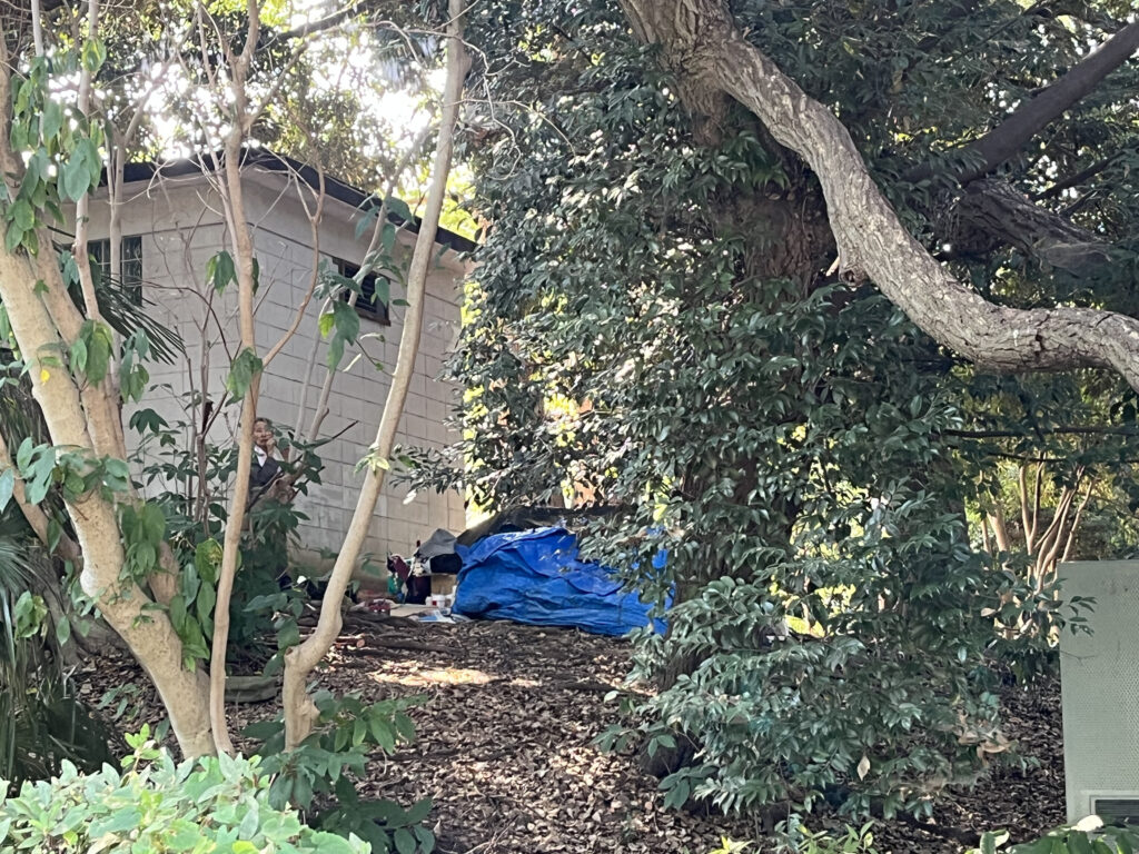 Soudain, d’autres cris me parviennent d’au-dessus de l’une des allées proches du sanctuaire shinto Ueno Toshogu. J’aperçois fugacement une femme près d’un petit bâtiment blanc. Elle tente de se cacher derrière des arbustes, près d’une grande bâche bleue, d’une autre noire et de cartons. Ce doit être sans doute son logis. Vit-elle seule ? Il me semble avoir entendu plusieurs voix surgir de là-haut. Je sais qu’à Tokyo, les sans-abris* survivent dans les parcs, les gares et près des berges du fleuve Sumida. Des associations se mobilisent dans les quartiers pour les aider mais le phénomène persiste. La précarité a gagné du terrain depuis 20 ans au Japon. Les femmes et les personnes âgées en sont les principales victimes.